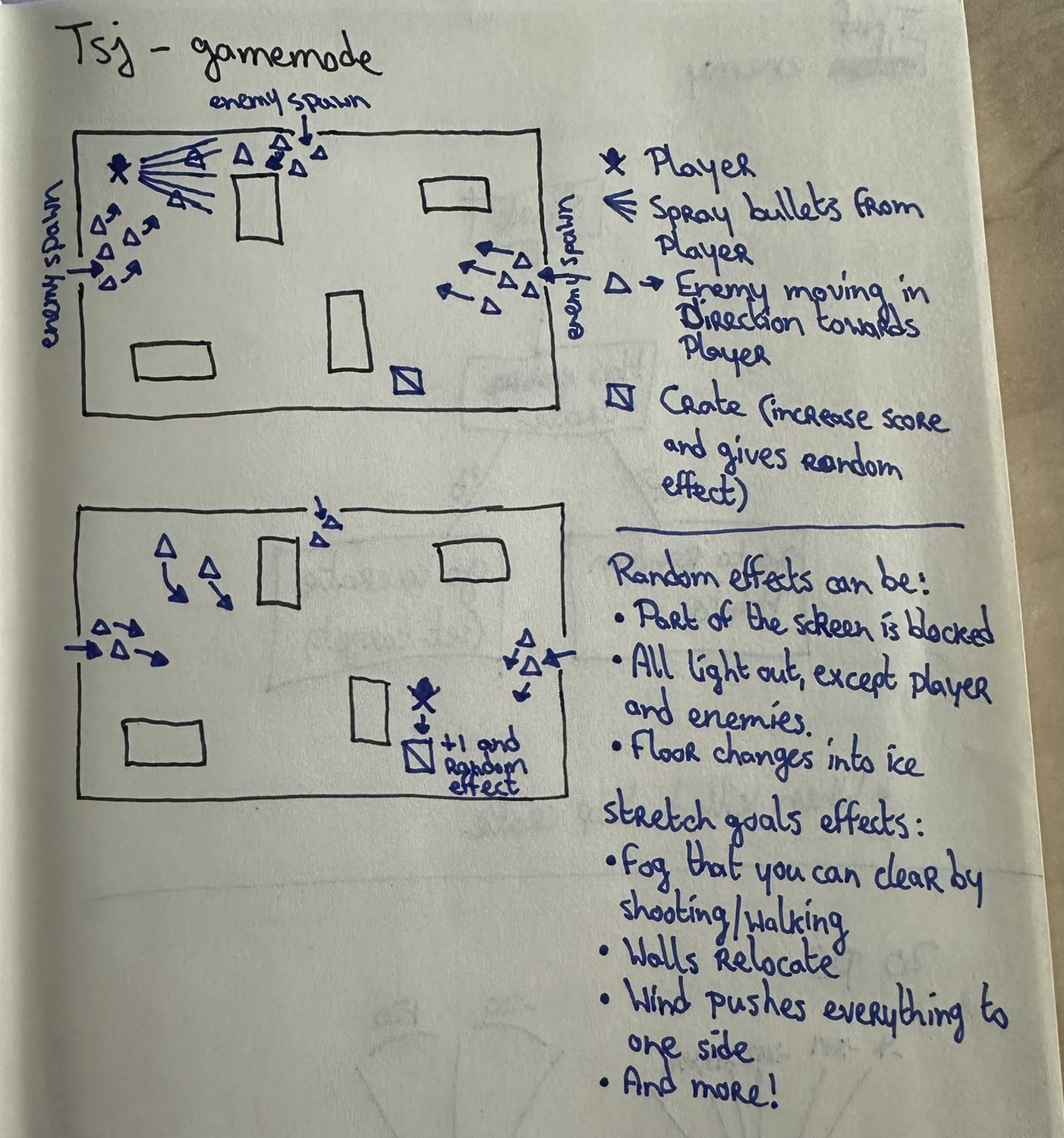 During ideation, I knew that the goal of this project was to create a twin-stick shooter where everything would need to be designed from scratch. This gave me a lot of freedom, which was both a blessing and a curse as would turn out later.