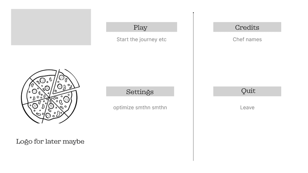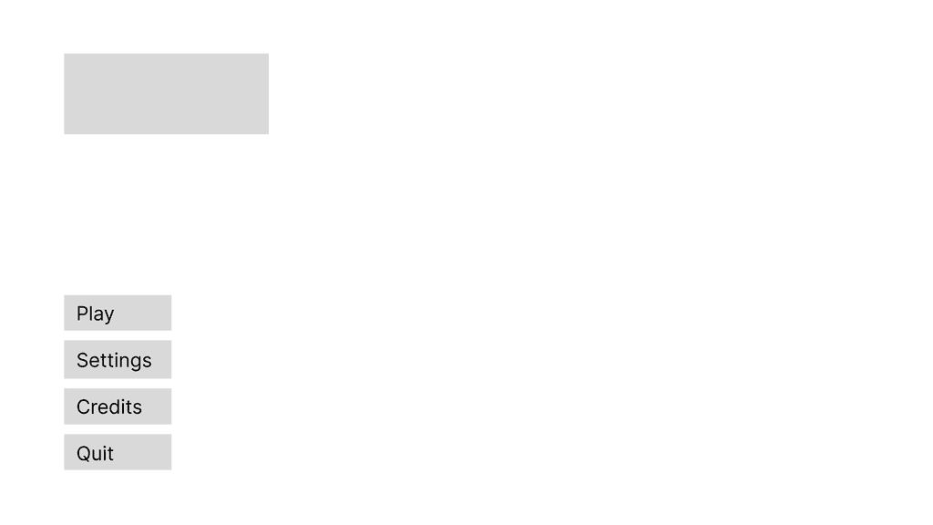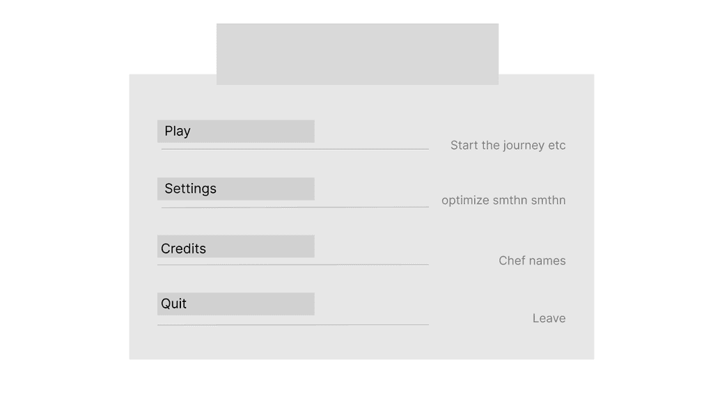 I wanted to leave a lot of white space for both the main menu and pause menu, because I was envisioning a 3D environment for the main menu, and a blurred out version of gameplay for the pause menu.