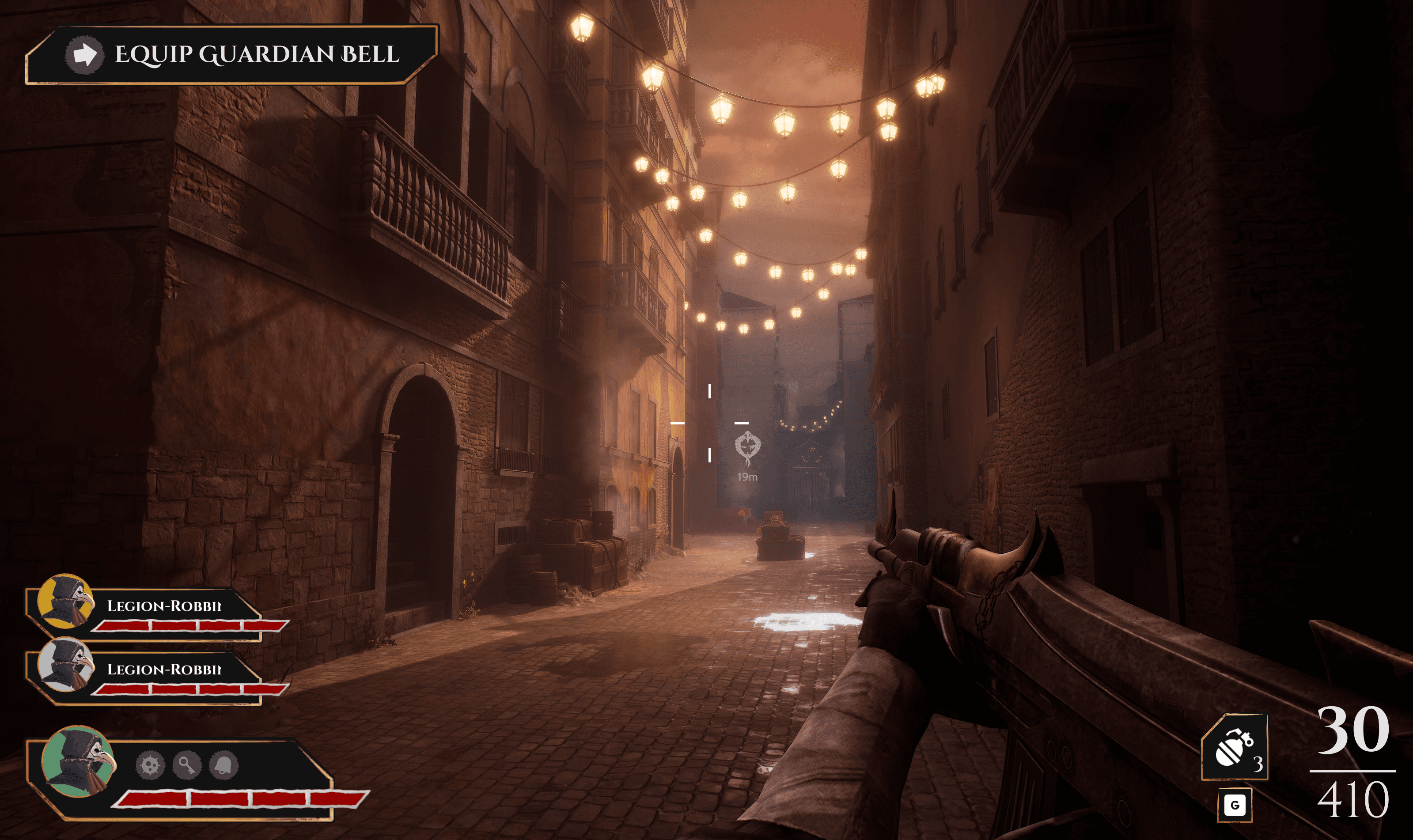 Umbra Mortis is a 3-player multiplayer FPS where you and your friends team up and fight through hordes of zombies, whilst throwing a bell to each other to heal up.